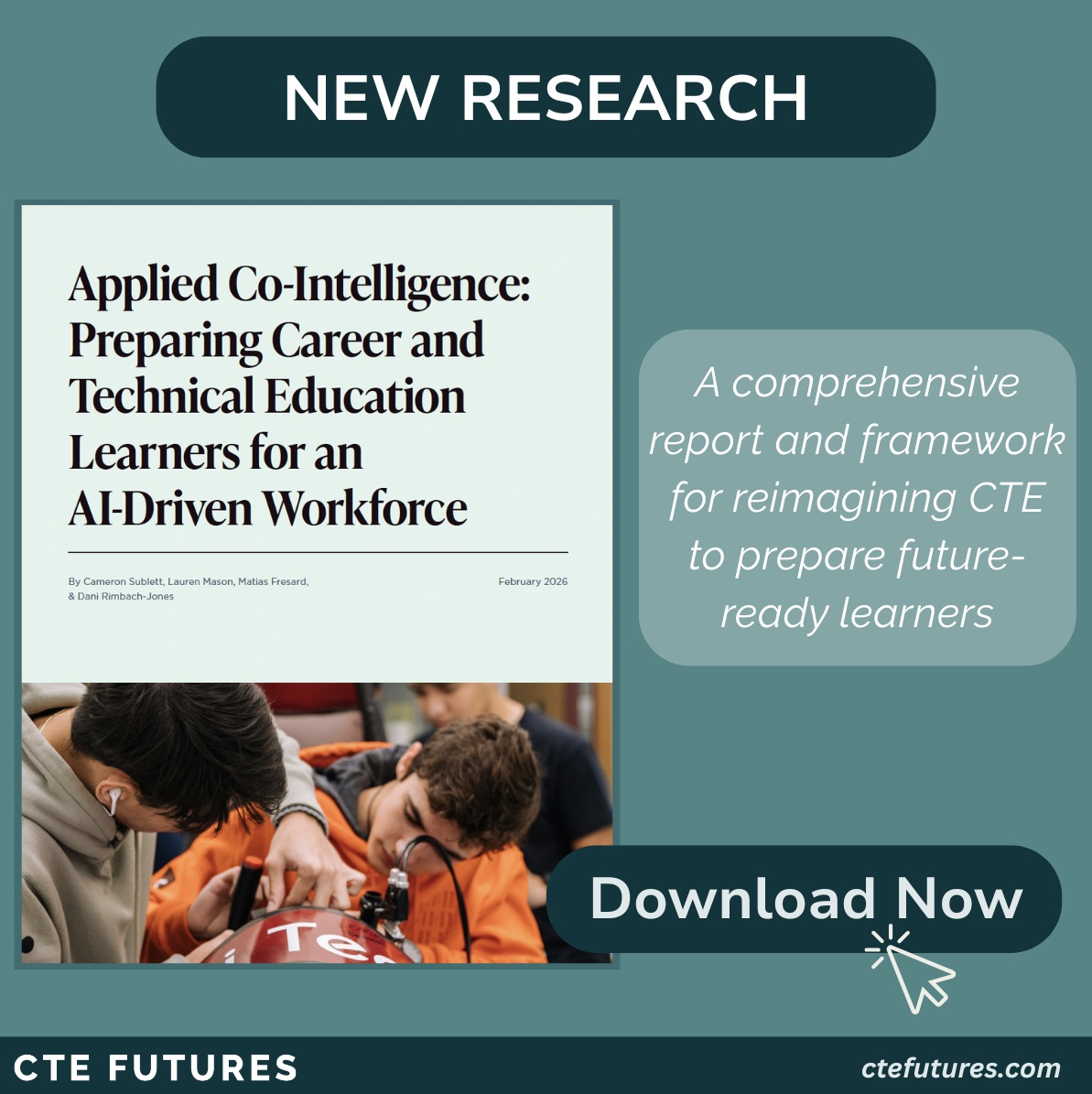 On Feb. 3, ACTE worked with CTE Futures, along with partners at Advance CTE, to release a comprehensive new report on the impact of AI on CTE programs: Applied Co-Intelligence: Preparing Career and Technical Education Learners for an AI-Driven Workforce.