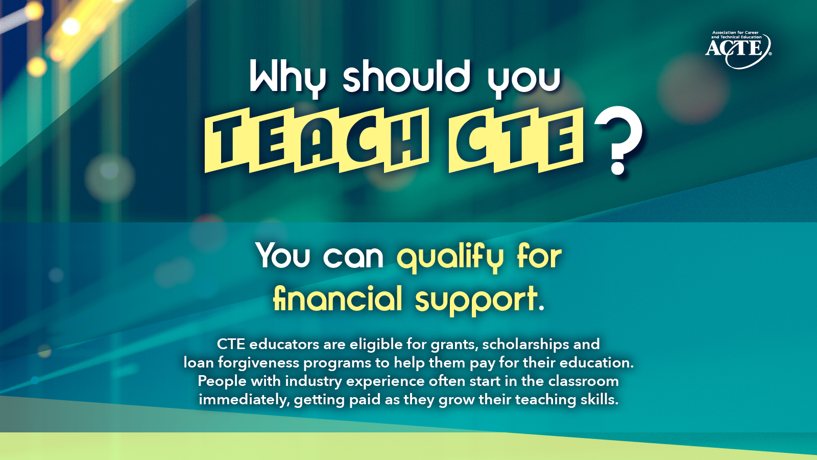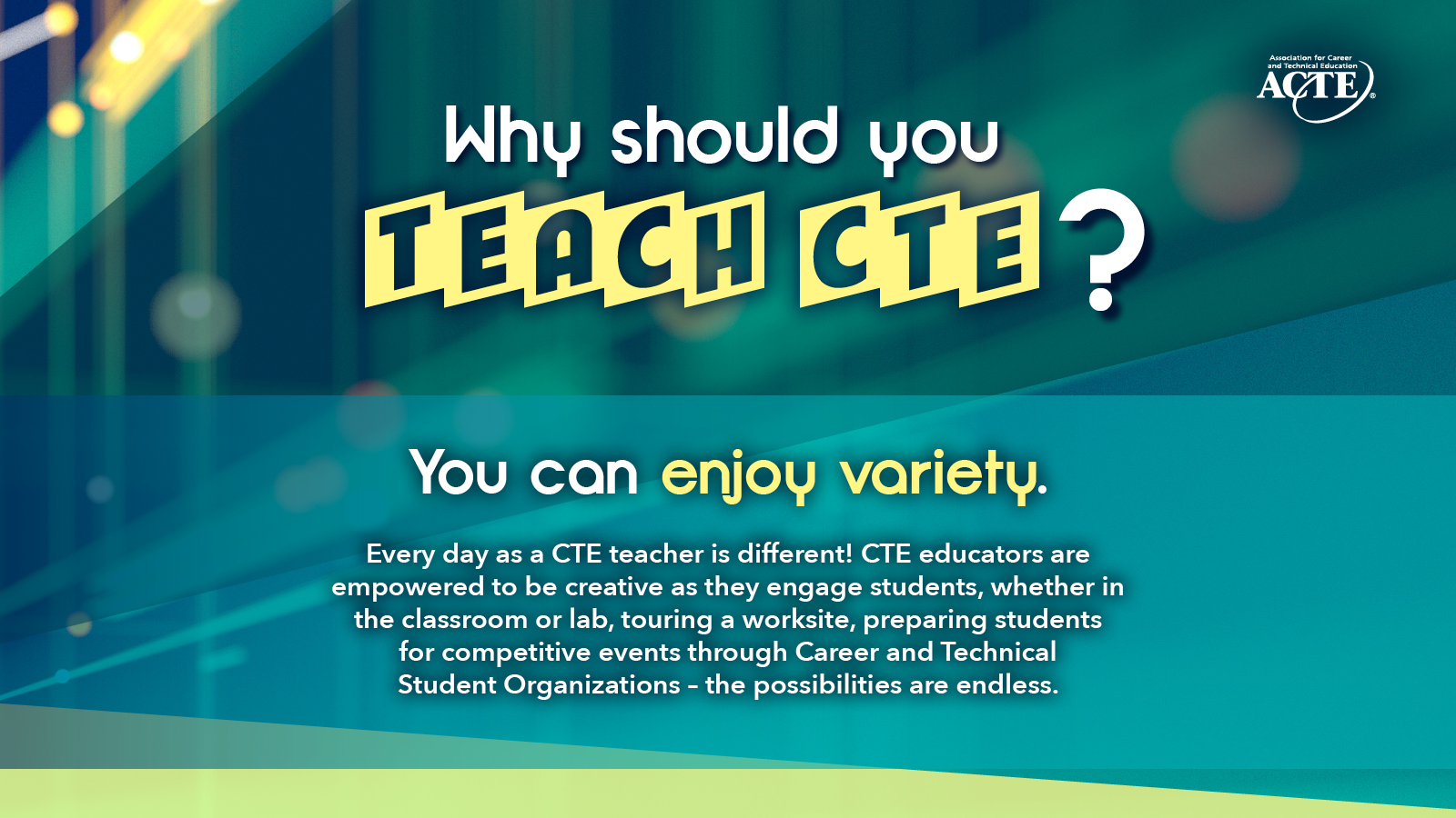You can help recruit future teachers and show your support for the CTE profession with our variety of graphic options for publications, presentations, social media, Zoom and more.
